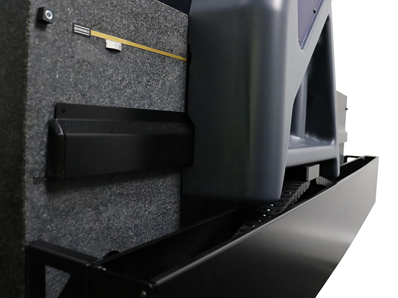 The entire design of the Horizon L has been optimised to take full advantage of parts already used on the Horizon whilst improving the stiffness-to-weight ratio across the bridge assembly. Most notably: The Y-axis rail is 200mm taller so that the same right-hand-side linear drive system is common and improves rigidity; the carriage assembly has reduced in size and weight, without compromising metrology performance, to improve the stiffess-to-weight ratio; the Z-axis motor has increased power to optimise its performance; the left-hand-side air bearing assembly has a custom extruded profile to keep weight to an absolute minimum and maintain stiffness.