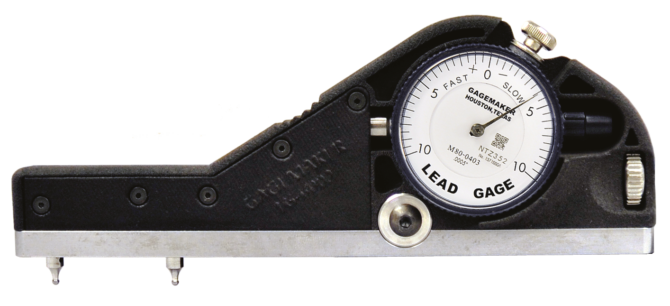 The LG-5003 uses the three-point system to inspect internal and external thread lead. Two fixed contact points at the rear of the gauge and one moveable contact point at the front of the gauge provide complete stability when taking thread lead measurements. This unique design does not require sweeping to obtain measurements.